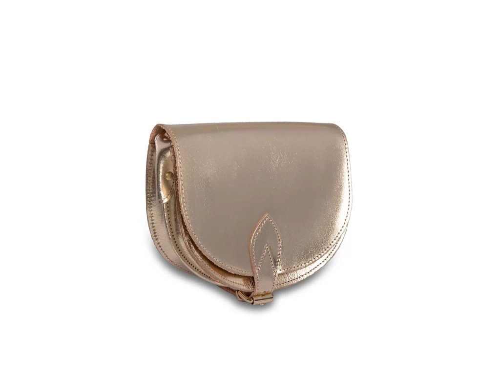 Ručně vyrobená crossbody kabelka ve zlatém, bronzovém a stříbrném provedení.